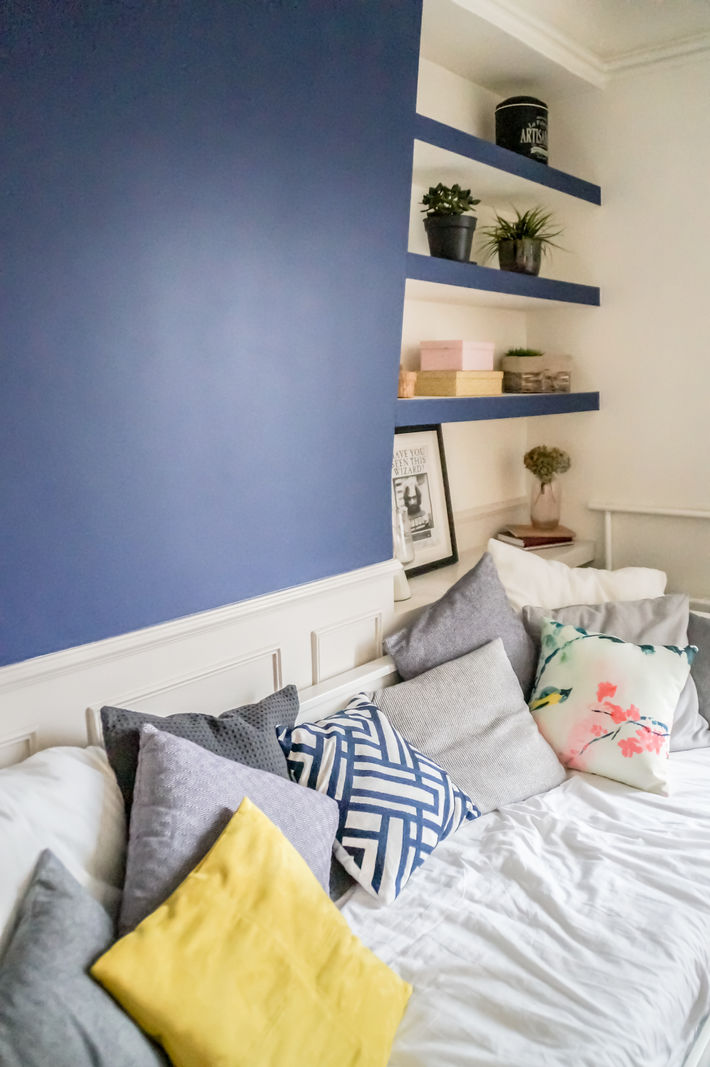 Pour cet appartement entièrement blanc, la demande était d’apporter du cachet et du caractère en optant pour une décoration scandinave. J'ai choisi des couleurs douces, un camaïeu de bleus et des motifs plus vifs pour contraster, le tout pour créer une ambiance moderne et accueillante.
